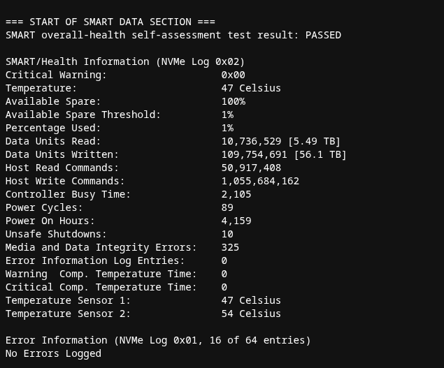 [Sun Apr 26 09:07:59 2026] critical medium error, dev nvme0n1, sector 1408235800 op 0x0:(READ) flags 0x0 phys_seg 1 prio class 2